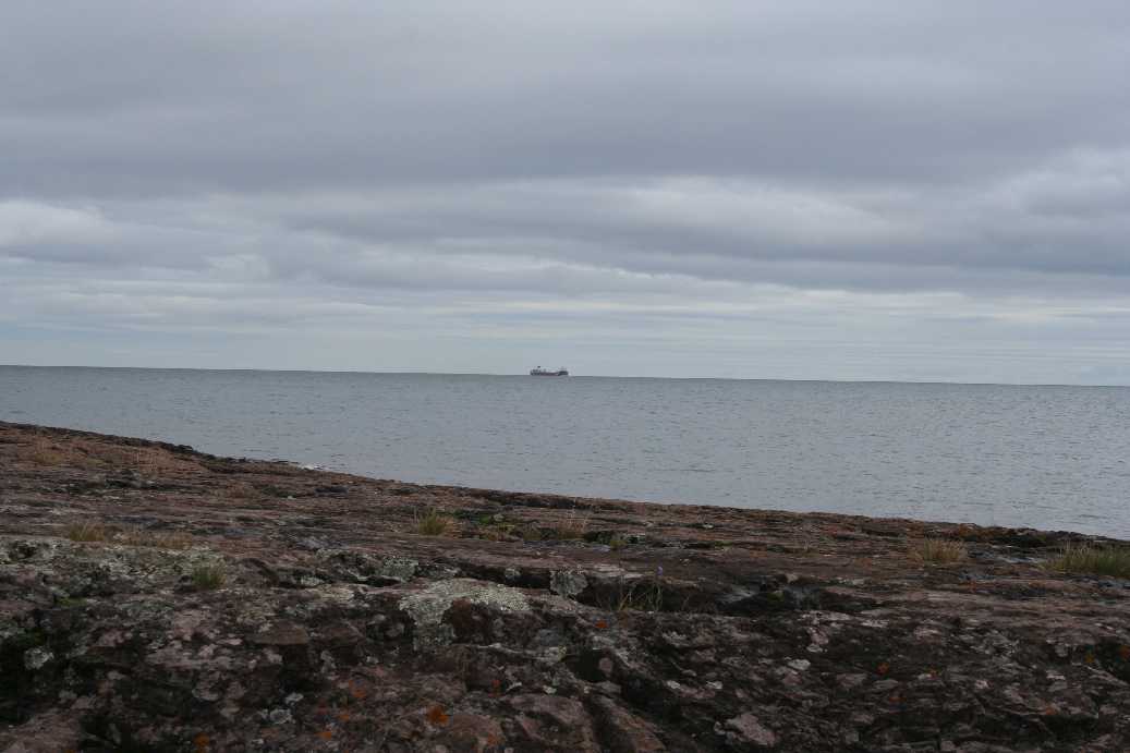 beneath the lighthouse, we noticed a ship on the horizon. At first, it