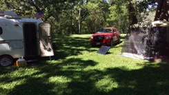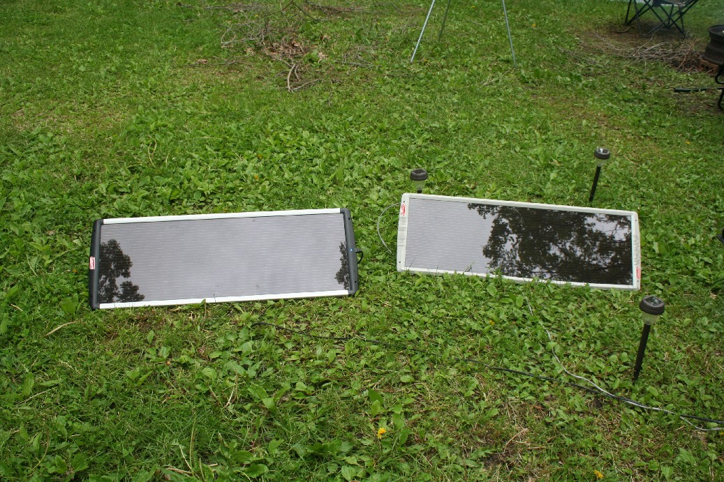 I thought it was time to upgrade our solar panel recharging system. Our old panels were nearing twenty years old, and could not produce enough power to supply our needs. So I found a Renogy system online that was the complete package. It was two 50 WATT solar panels that combined would put out 100 WATTS of charging power. That is equivalent to around 8 to 10 AMPs of charge in direct sunlight. That was a huge improvement over the three panels with a combine total wattage of 32 in direct sunlight. They take up less space, produce more power, and fold up into a nice little protective case that I can keep with us in the Scamp at all times. they come with battery clamps to connect directly to the battery, or any battery for that matter, but I did order a pigtail that I could hard wire to the battery. That way when we need to hook up the solar panels, all I have to do is to plug them into the pigtail for a solid connection. I also purchased a twenty foot, two wire extension cable so I have a larger reach when we are camping. I also added yet another device to our camping kit. It is a 30 AMP surge protector for the camper. It gives you readings about the outlet you are using like if it is shorted out, reversed polarity, etc. before you plug your camper in. It also will protect you from surges and jolts. It is designed NOT to be a resetable surge protector. It is designed to fry before the electronics do in the camper. It is a $90 insurance policy that protects the thousands of dollars of appliances and electronics in the camper. Just a disclaimer, I am not insuring your camper against damage if you use one and you have damage. That is up the company that you bought it from. I'm just suggesting it's a good idea to have yet another layer of protection. |