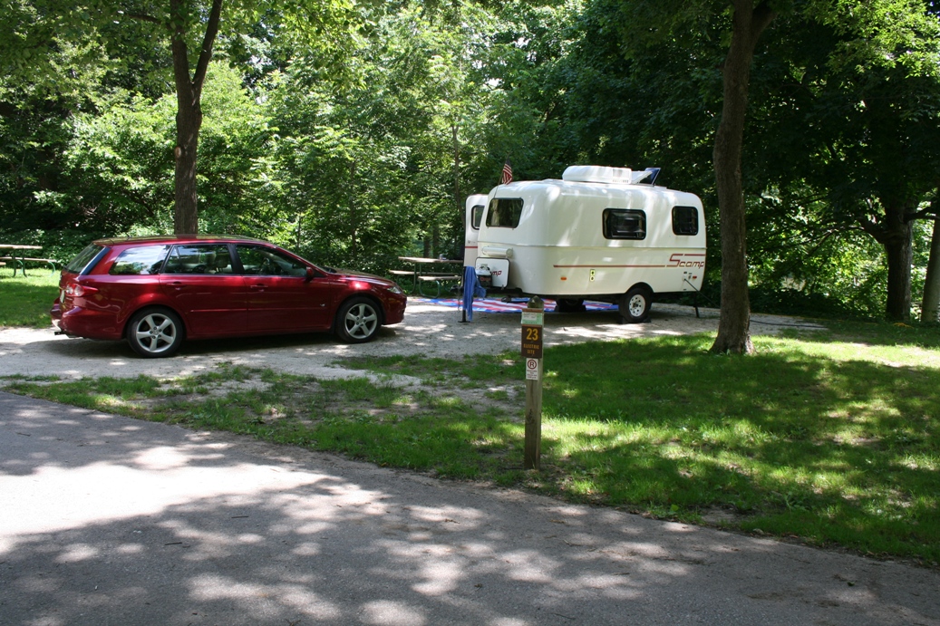The other vehicle that we had at the time of the Scamp purchase was a 1988 Mazda B2200 2.2L four cylinder half ton pickup truck, with a manual transmission. Initially, we were thinking about using this as the primary tow vehicle, but at the time of purchase, the truck was showing its age, and it was not very roomy for a long trip. I decided that it would be better as a backup tow vehicle, or the tow vehicle for short trips. That way we could take the wear and tear off of the car. It worked really well for these purposes, but its age eventually caught up to it. In the late spring of 2013, we found that the frame had severe rust damage, as well as some dangerous fracturing, that could not be repaired. We ended up having to scrap it out a few months later. During the four years or so that we did use it as a tow vehicle, it perform well. Most newer four cylinder trucks would not have much difficulty pulling any size of Scamp. If the Mazda truck had been a bit younger, I image that it would not have had any difficulty pulling the Scamp. As a matter of fact, the summer before we purchased our Scamp, we saw a Ford Ranger pulling a fifth wheel Scamp through a campground with very little effort, and the Rangers are not much different from the Mazdas. That is what prompted me to start looking at the Scamp brand of campers in the first place. Whatever vehicle you end up using, I would still recommend the electric brake system for the trailer and vehicle. It is much safer to have them when towing, and it really does help to have the trailer slow itself down, while taking the pressure off of the tow vehicle's brake system. Below you will find a series of photos showing the various places that we used the Mazda truck as the tow vehicle. There are other photos we have were we used the Mazda to tow the canoe trailer, but I am primarily focusing on tow vehicles for Scamp trailers.